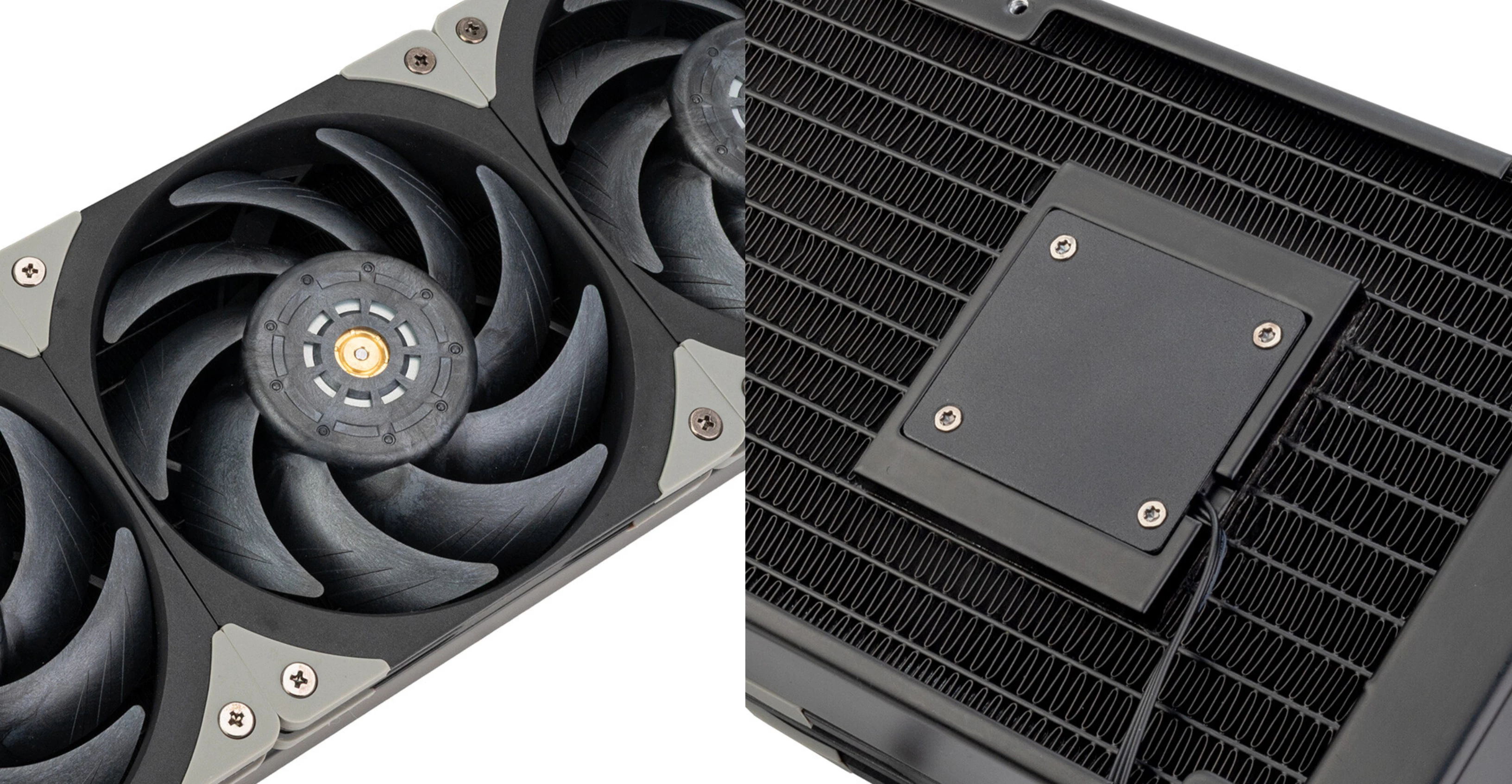 A vízblokk teljes egészében nikkelbevonatú rézből készült. A két pumpa egyenként akár 4 000 RPM fordulatszámra is képes. A gumicső hossza 45 cm, nylon szövetborítással. A SilverStone három darab nagy teljesítményű 120 mm-es ventilátort mellékel a hűtőhöz. Ezek dupla golyóscsapágyasak, 4 tűs PWM-csatlakozót használnak, és folyadékkristály-polimer (LCP) alapú lapátkialakítással készültek. A ventilátorok fordulatszáma 800 és 3 000 RPM között mozog, légszállításuk maximum 95,1 CFM, statikus nyomásuk 5,2 mm H₂O, zajszintjük pedig legfeljebb 39,6 dBA.
