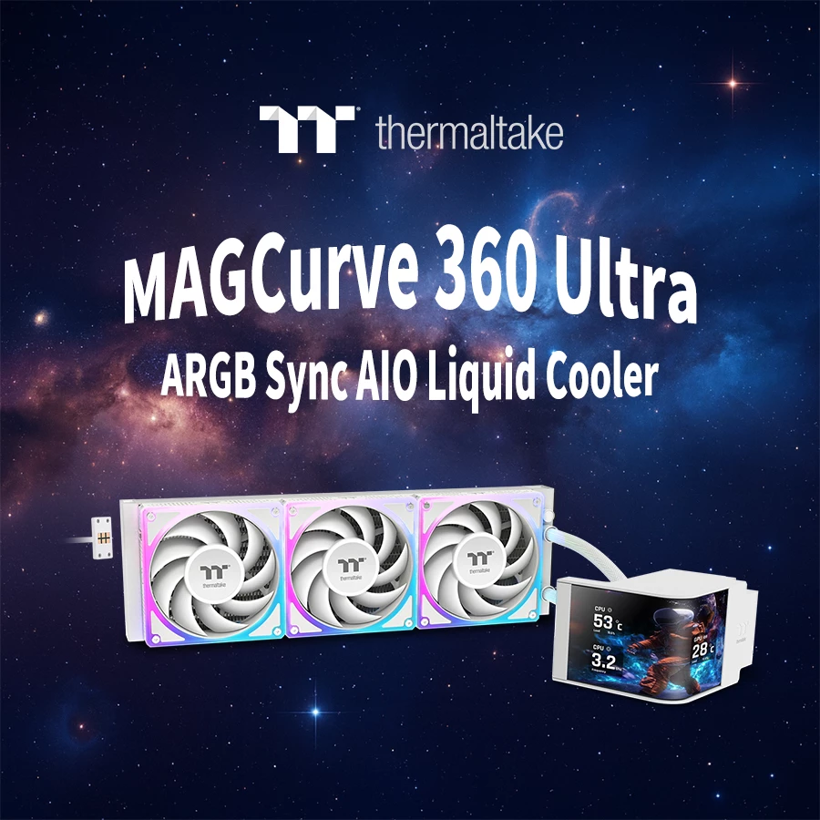 A Thermaltake, a prémium DIY PC-hardvermegoldások vezető márkája bemutatja a MAGCurve 360 Ultra ARGB Sync AIO-folyadékhűtőt, egy vizuális megjelenésre összpontosító hűtési megoldást, amely egyesíti a kreatív kijelző-testreszabást a nagy teljesítményű hűtési kialakítással. Egy 6,67 hüvelykes, ívelt AMOLED kijelzővel és integrált AI Forge funkcióval a MAGCurve a CPU-hűtést a rendszer vizuális kifejezőeszközévé alakítja át, miközben megbízható hűtést biztosít nagy teljesítményű buildekhez. A MAGCurve 360 Ultra ARGB Sync fekete és Snow változatban kapható, és olyan PC-építőknek tervezték, akik egyaránt értékelik az esztétikát és a teljesítményt.