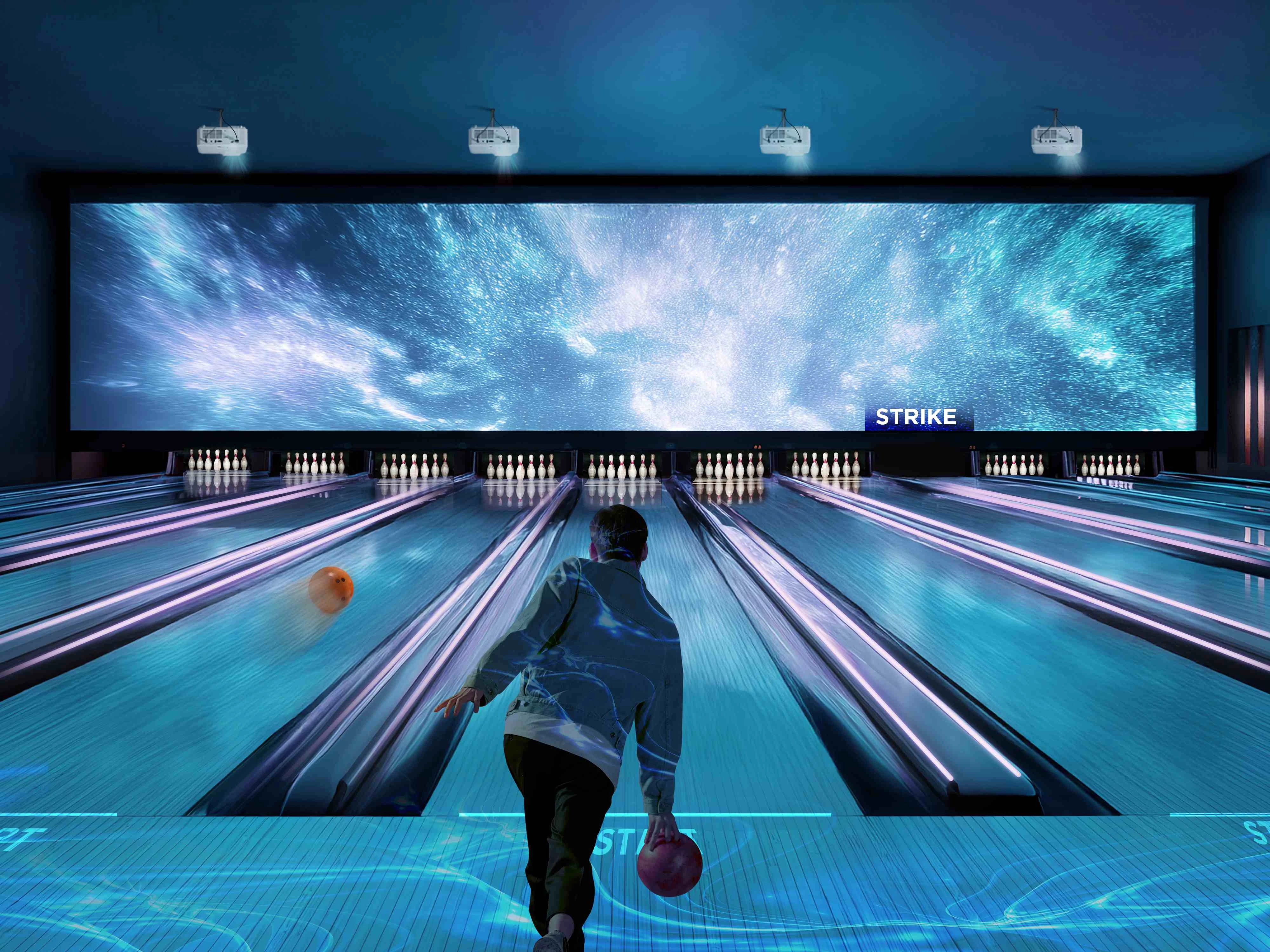 Az LS sorozat lehetővé teszi az operátoroknak, hogy az ismerős tereket azonnal teljesen magával ragadó környezetté alakítsák át. Például bowlingpályákon a falakon és pályákon átívelő vetítés 360 fokos panorámaképet hoz létre, amely a bowlingestet magával ragadó élménnyé varázsolja, növelve a vásárlói elköteleződést és az ismételt látogatások számát.