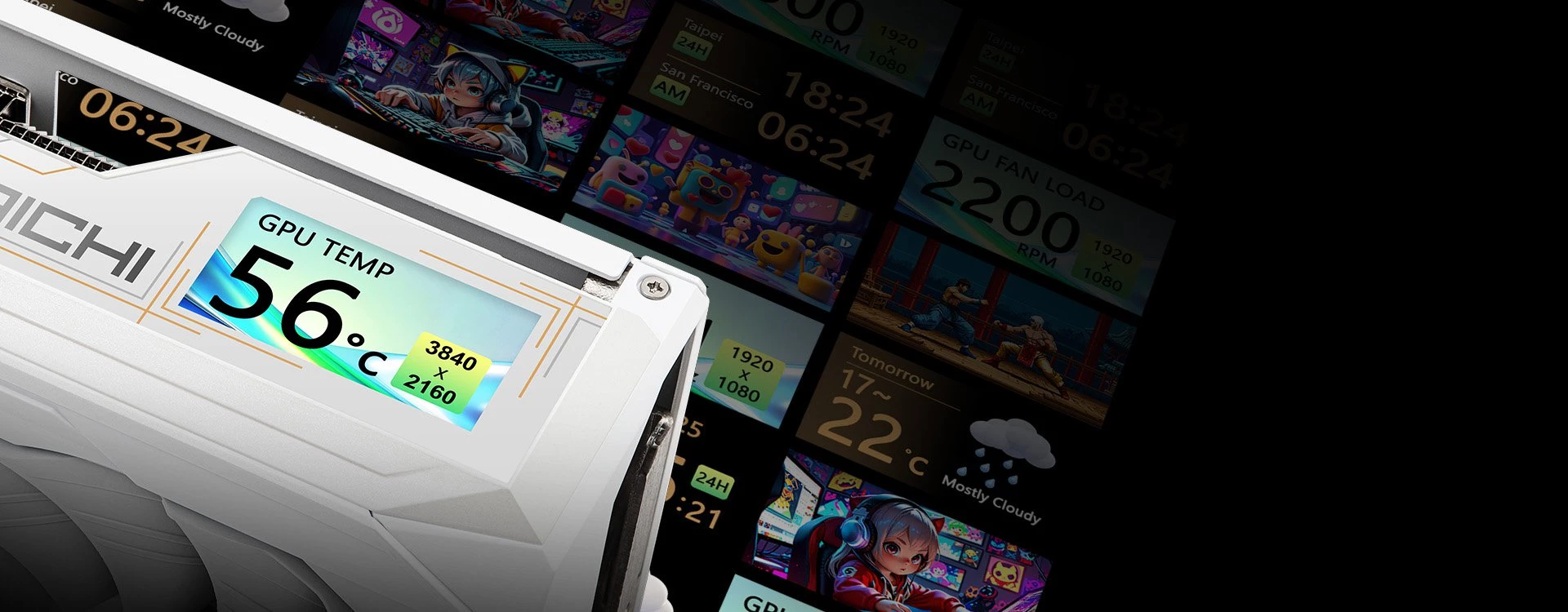 A technológiai innovációk sorát az úgynevezett „LCD Information Center” vezeti. A kártya oldalán elhelyezett 2 hüvelykes, nagyfelbontású színes LCD kijelző forradalmasítja a rendszerfelügyeletet, hiszen segítségével a felhasználók közvetlenül a hardveren követhetik nyomon a valós idejű órajeleket, hőmérsékleti adatokat vagy egyedi animációkkal tehetik egyedivé konfigurációjukat.