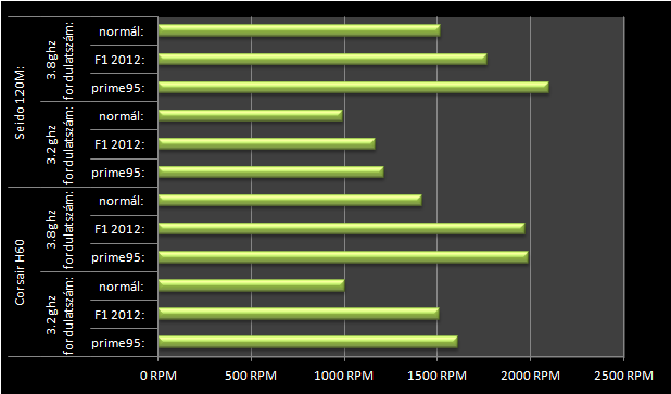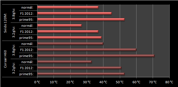 3 féle környezetben és 2 féle órajellel teszteltem le a processzorhűtőket: - prime 95 - F1 2012 - alapjárat tesztek után