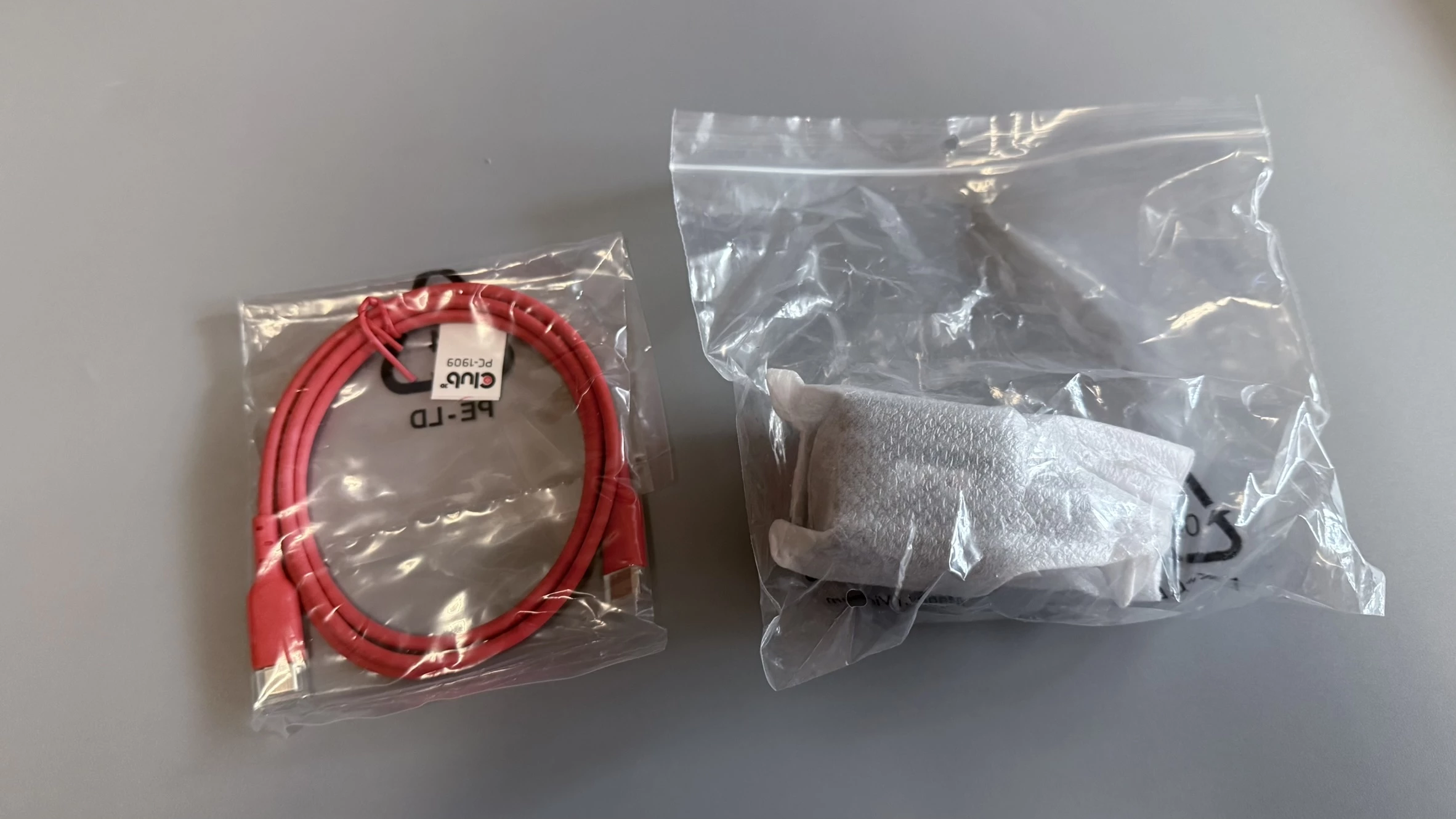 A dobozt kibontva két nylon csomagolást láthatunk. Egyikben a téglavörös színű USB Type-C kábelt találjuk, a másikban pedig egy EPS csomagolás magát a töltőt rejti.