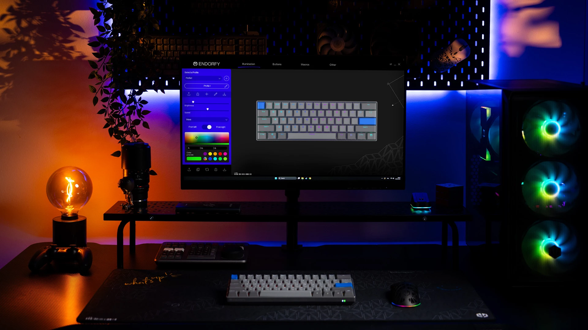 Az ENDORFY egységes, intuitív szoftverével a testreszabhatóság egy karnyújtásnyira van. Könnyedén beállíthatod a fényeffekteket, átprogramozhatod a billentyűket és makrókat hozhatsz létre. A szoftver automatikusan felismeri a billentyűzetet és zökkenőmentesen működik vezeték nélküli módban az USB-adapteren keresztül, így teljes kontrollt biztosít bármilyen setup felett.